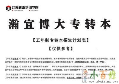 江苏瀚宣博大专转本学校本着保三本冲二本的服务理念,专业从事五年制专转本辅导13年,通过多年来对五年制专转本主考院校专转本考试的不断探索和创新,针对不同院校的考试条件和内容,制定了计划性教学辅导的培训班次:单科班、寒暑假集训班、考前班、冲刺班、签约协议班,学员可根据自身基础选择班次x b a i x i n g c o m。